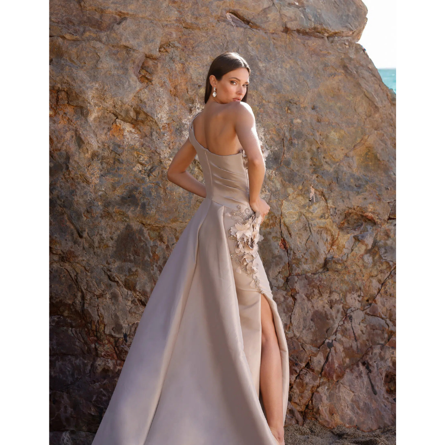 A sleek bodycon evening dress paired with a dramatic overskirt for added flair and elegance. Perfect for formal events, galas, and red-carpet nights.